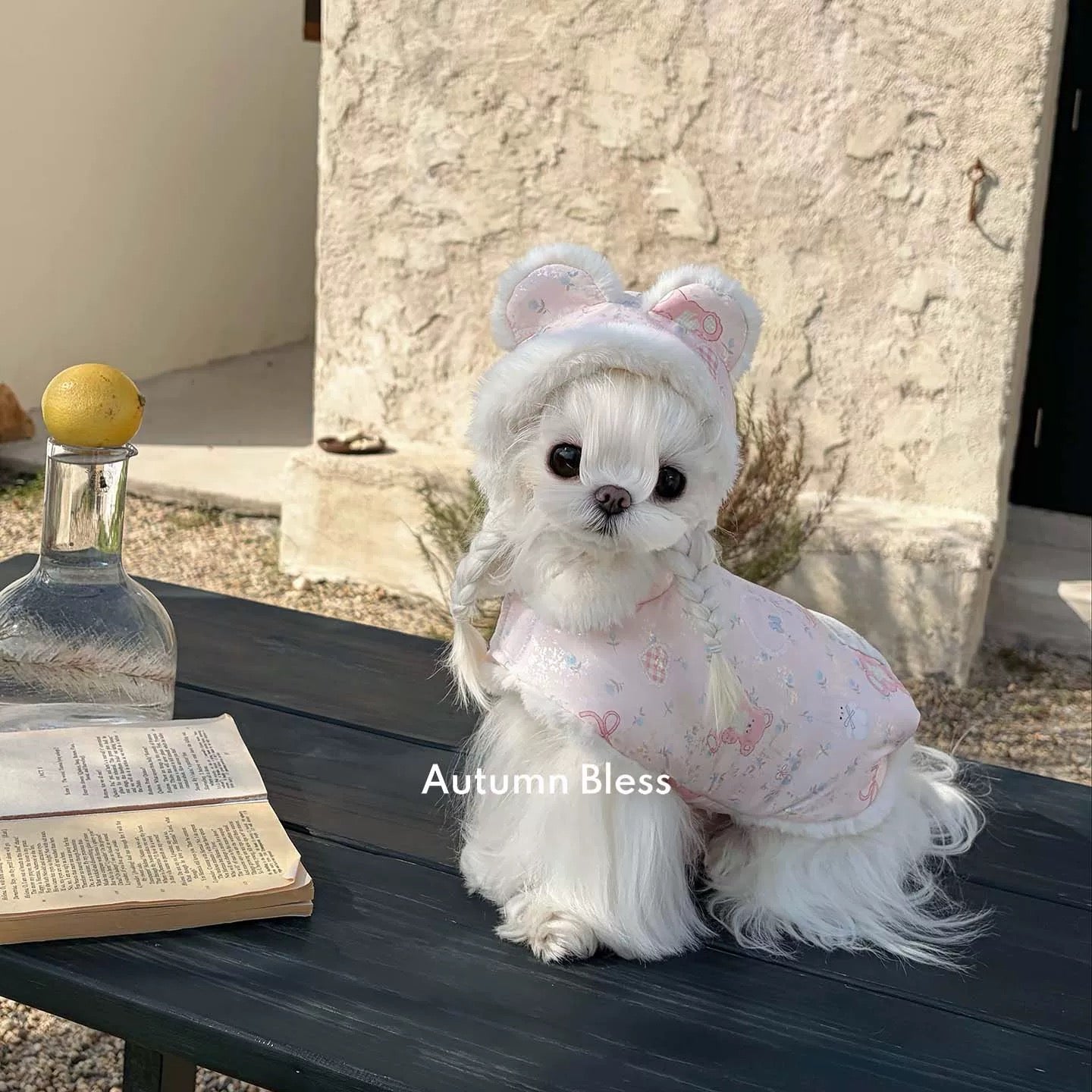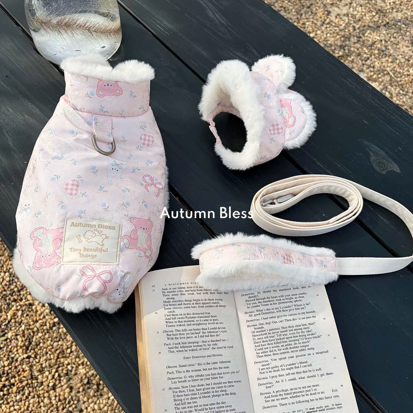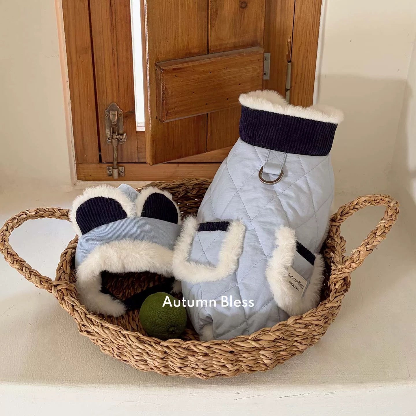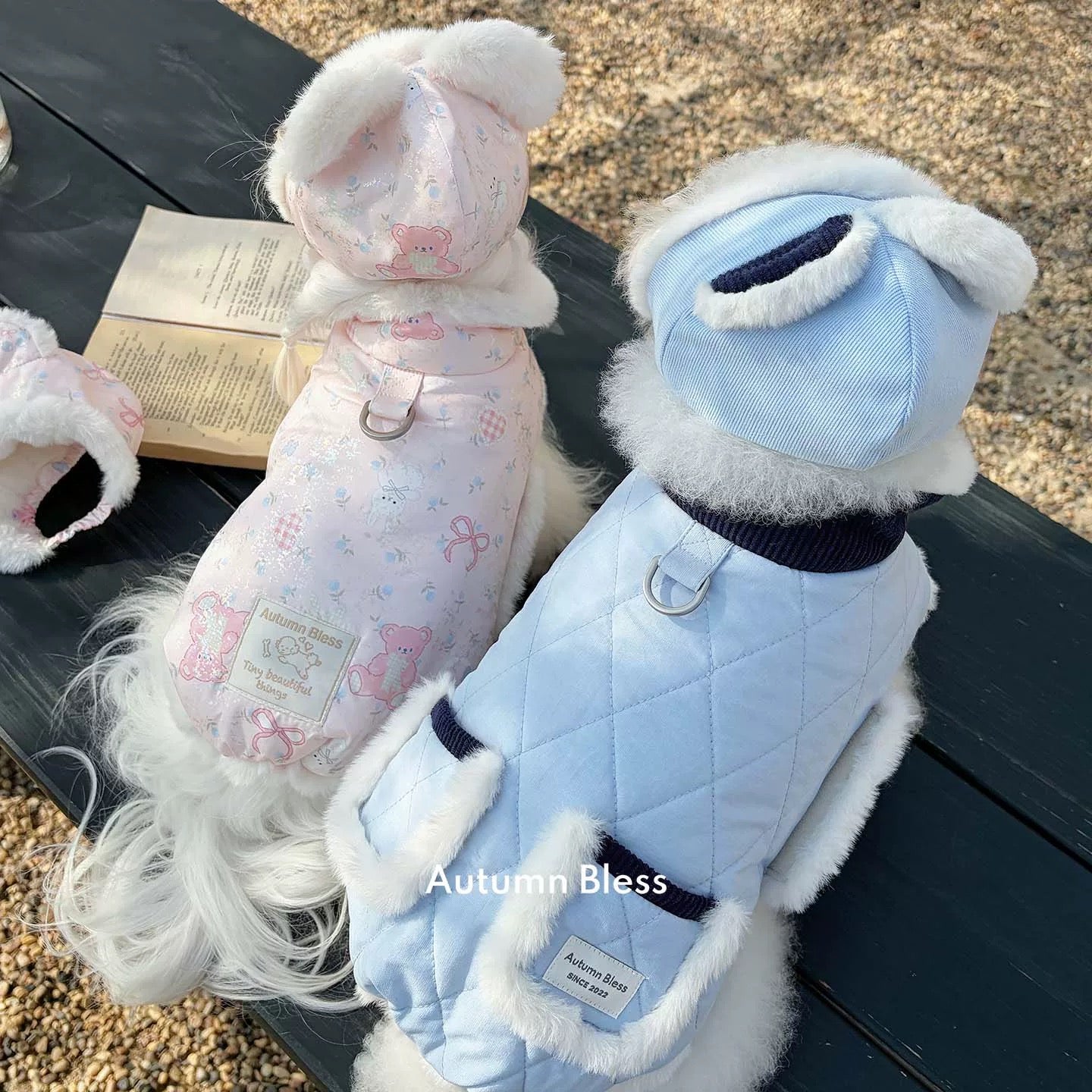 Autumn Bless ふわもこ冬あったかジャケット – テディ柄/キルティングブルー | Furry Cozy Winter Jacket – Teddy Print & Quilted Blue